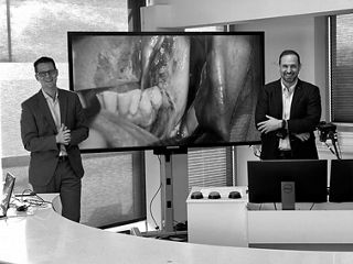 Wir gehen neue Wege – im März 2021 hat der erste virtuelle Hands-On-Kurs mit praktischen Übungen am Schwein in der White School von ZTM Olaf van Iperen in Wachtberg (Bonn) stattgefunden. Dr. Jochen Tunkel und Prof. Dr. Dr. Dr. Peer Kämmerer lieferten sich einen unterhaltsamen und interaktiven Schlagabtausch zum Thema Augmentation mit allogenen Knochenersatzmaterialien und führten gemeinsam mit den 25 Teilnehmern Hands-On-Übungen am Modell und am Schwein durch. Dank der 12 unterschiedlichen Kameraperspektiven konnten die Teilnehmerinnen und Teilnehmer die Hands-On-Übungen zu Hause am Screen genau verfolgen.