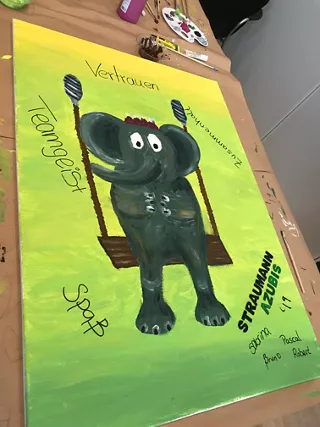 Unser (mehr oder weniger ausgeprägtes) künstlerisches Geschick konnten wir im Anschluss in einem gemeinsamen Kunstwerk unter Beweis stellen, was nicht nur einmal zu schallendem Gelächter führte.