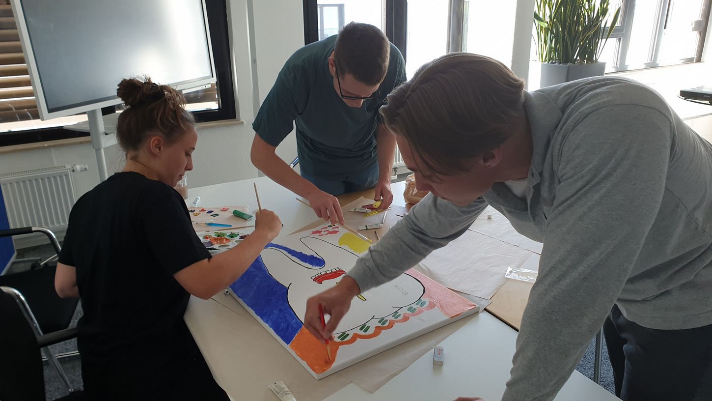 Am letzten der drei Einführungstage lernten wir uns mit Hilfe einer kleinen Fragerunde näher kennen, sodass unser Zusammenhalt gestärkt wird. Anschließend durften wir unsere künstlerischen Fähigkeiten mit Hilfe der Gestaltung eines Bildes unter Beweis stellen.