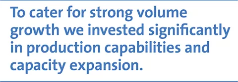 To cater for strong volume growth and to meet future demand, we invested significantly in production capabilities and capacity expansion in Brazil, the US and Switzerland, resulting in higher production costs.