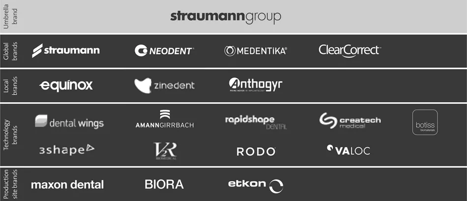 The Straumann Group unites various global and local/regional product brands with a number of fully/partially owned companies and independent partners, which provide technology and manufacturing expertise.
