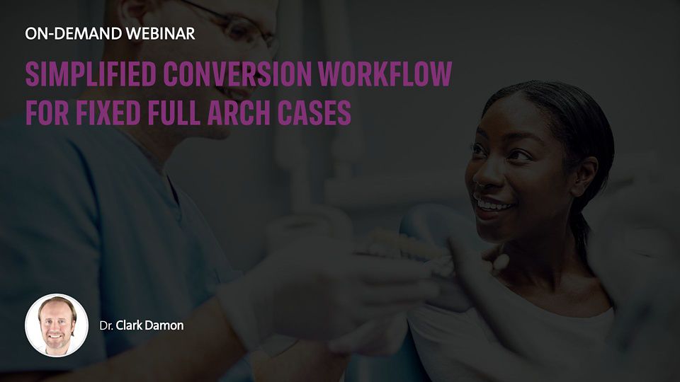 Dr. Clark Damon presents a new portfolio offering for full arch fixed cases - NeoConvert. Hear how this new product will help you upgrade your full arch conversions with quick and easy conversions, with strong fixed temporaries. Dr. Clark Damon will present clinical and laboratory step by step instructions with clinical photos. Objectives: