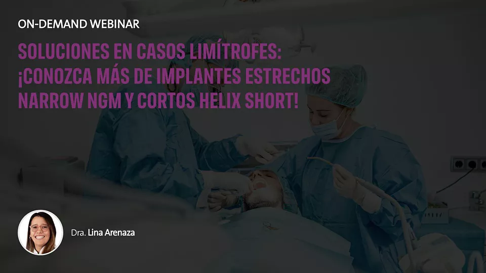 Aprenda a planificar tratamientos clínicos con poca disponibilidad ósea o espacio reducido utilizando implantes estrechos como Narrow NGM o cortos como Helix Short. Únase a nuestra masterclass en vivo y descubra cómo estas soluciones pueden optimizar sus protocolos clínicos desde la planificación hasta la ejecución, con resultados estéticos y predecibles. Aprenda las soluciones que los implantes Narrow NGM y Helix Short Ofrecen: