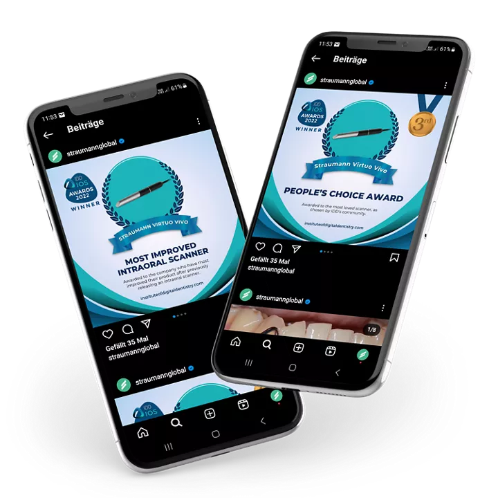 حصل جهاز Virtuo Vivo™ على جائزة "أكثر أجهزة المسح داخل الفم تطورًا" علاوة على فوزه بالمرتبة الثالثة لجائزة "People’s Choice" لأفضل جهاز مسح في عام 2022، وهي المسابقة التي يصوّت فيها أكثر من 3500 طبيب أسنان من مختلف أنحاء العالم. وقد اختيرت جائزة iDD لأجهزة المسح داخل الفم لعام 2022 من جانب معهد طب الأسنان الرقمي -إحدى أكبر الهيئات التعليمية على مستوى العالم في مجال طب الأسنان الرقمي- وهي الجائزة التي تُمنح تقديرًا للتميُّز في مجال تقنيات المسح داخل الفم.