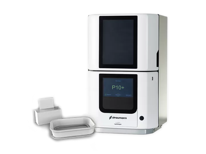 يتيح النظام المرن لمنصات وخزانات البناء لطابعة P10+ الطباعة الفورية ثلاثية الأبعاد لمنتجات الأسنان، بما في ذلك قوالب الثَّقب، والتيجان والجسور المؤقتة، والجبائر، وغير ذلك الكثير، ويتيح كذلك التناسق بين مسارات العمل الموثقة لدى Straumann، فضلاً عن طريقة عمل بالغة السهولة والسلاسة دون الحاجة إلى معرفة متعمقة بالطباعة ثلاثية الأبعاد. يجري إعداد البيانات اللازمة لتوليد بيانات الطباعة ثلاثية الأبعاد داخليًا. تتوافق كذلك وحدة P wash للتنظيف ووحدة P cure للعلاج الضوئي ومادة P pro من Straumann توافقًا مثاليًا مع طابعة P10+.