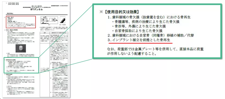 このたび、弊社取扱製品「RFTデンタル」(承認番号: 30100BZX00096A01)におきまして、新たにインプラント治療におけるGBR(骨誘導再生術)目的での使用が適応として追加されましたことをご報告申し上げます。これにより、より幅広い症例に対応可能となり、貴院におけるインプラント治療の選択肢がさらに広がるものと考えております。