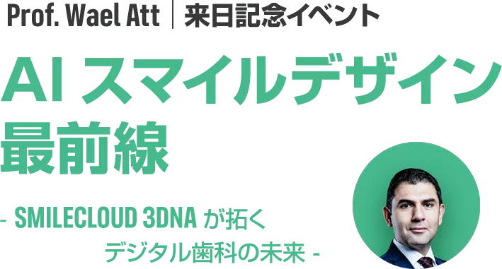 インプラント補綴とデジタル再建学の分野で世界的に活躍する Prof. Dr. Wael Attを迎え、Smilecloud 3DNAの可能性に触れる特別講演会を開催します。顔貌を基準にしたAI支援のスマイルデザインや、3D情報を活用した視覚的な治療提案は、審美性と機能性の両立をめざす臨床に新たな示唆をもたらします。デジタルデンティストリーの最前線を学ぶ貴重な機会をお見逃しなく。