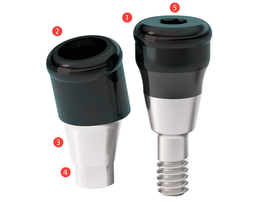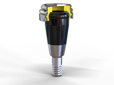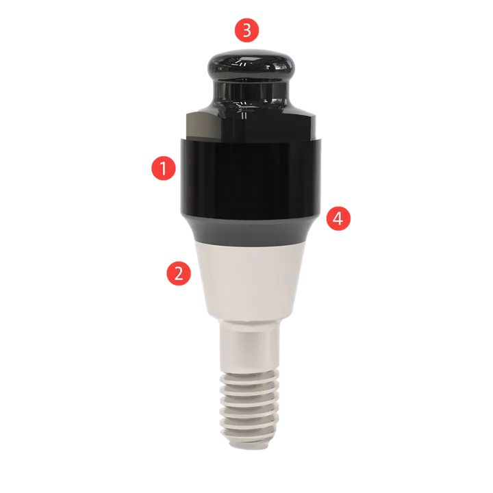 The surface quality of the ADLC coating (amorphous diamond-like carbon) introduces improved standards. Significant hardness, along with reliable sliding characteristics, helps reduce abrasion on the abutment and limit damage to the retention insert.
