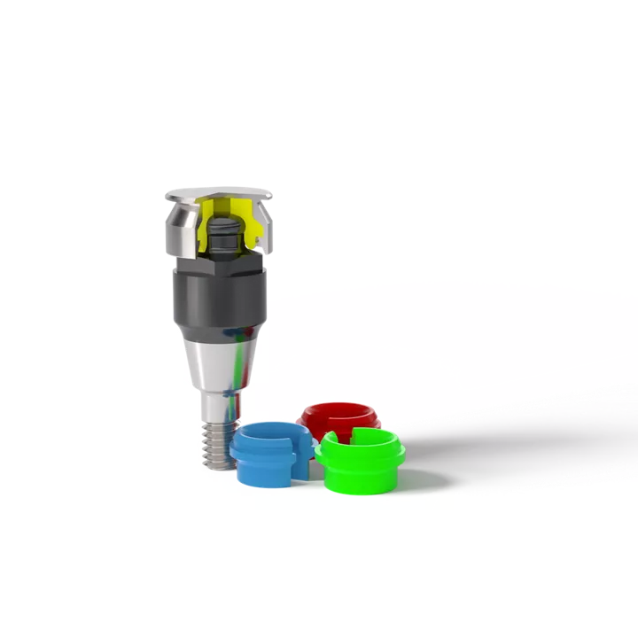 Choose between 6 retention inserts with different retention forces, which easily master divergences up to 20 degrees per implant. In combination with angled Novaloc abutments even 35° per implant.
