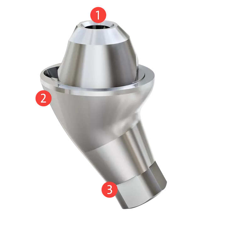 Accommodates a wide range of clinical situations with various prosthetic options, angulations and gingival heights.
