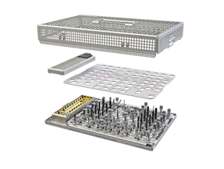 • Surgical Trays: Arrange instruments according to the color-coded labels and printed graphics within the tray. Ensure all tools are securely positioned to prevent movement during transport and sterilization.