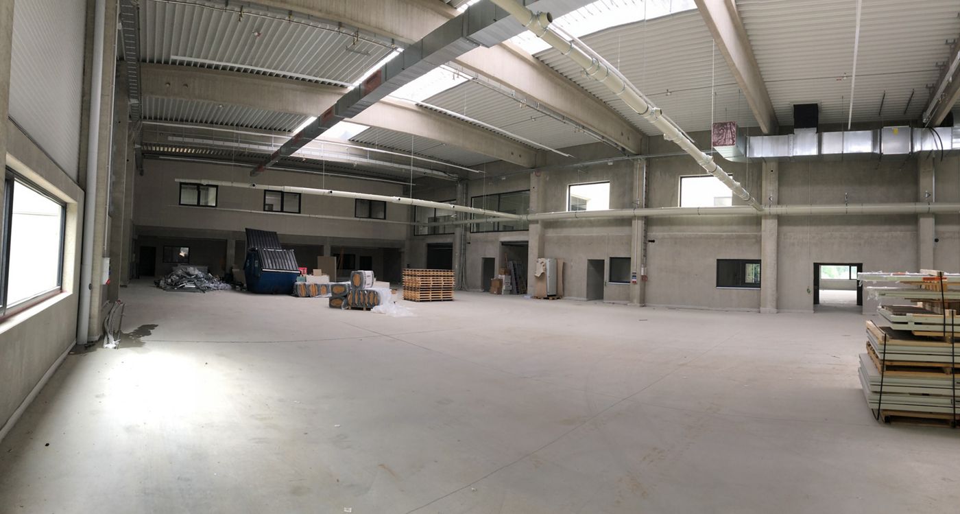 The dry construction work and the ventilation and sanitary installations in the production hall and the office building are almost complete.