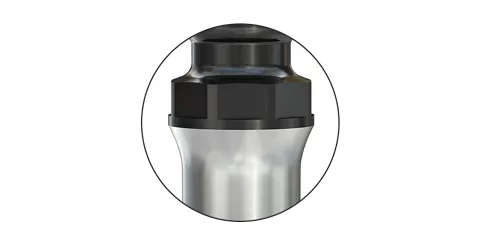 The surface quality of the ADLC coating (amorphous diamond- like carbon) sets new standards. Maximum hardness in combination with optimum sliding reduces abrasion on the abutment and damage to the retention inserts.