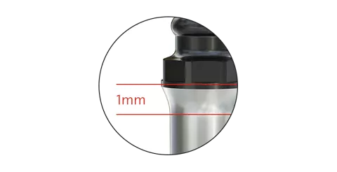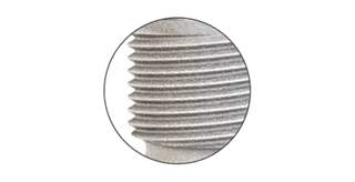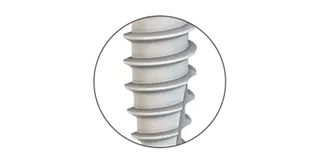 The upper part of the thread is a micro thread to ensure an even and gentle distribution of force into the bone.