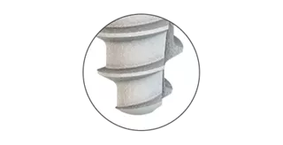 The lower, largest part of the thread is a self-tapping macro-thread. With its progressive thread flanks, this is primarily designed to achieve the necessary primary stability.