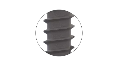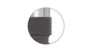 The upper part of the thread is a micro thread to ensure an even and gentle distribution of force into the bone.