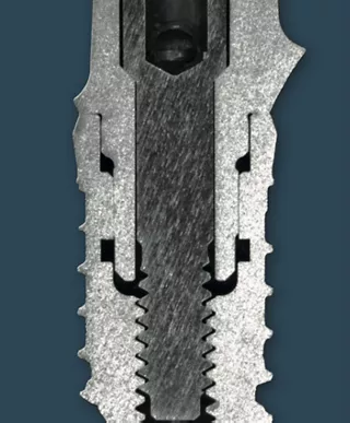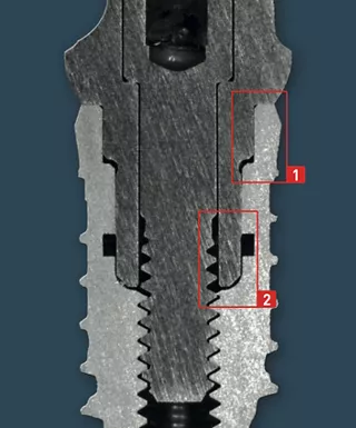 | 1 | Reduced gap dimensions on the preliminary cylindrical segments ensure less relative movement between the implant and abutment. This reduces the stress on the abutment screw and "micro-pump effect" of the system. |