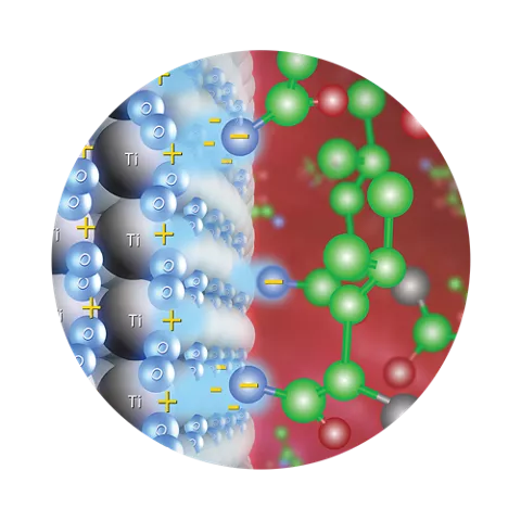 É sabido que a camada de óxido de titânio de uma superfície hidrofóbica, normalmente se apresenta eletronegativa. Dessa maneira, a