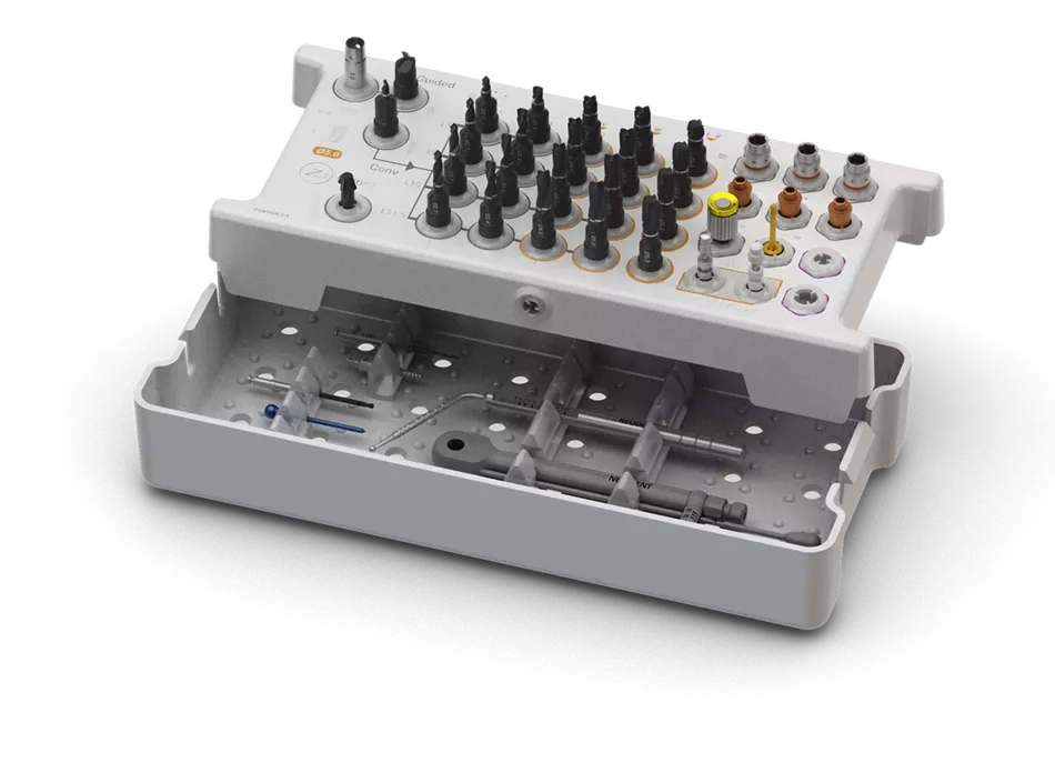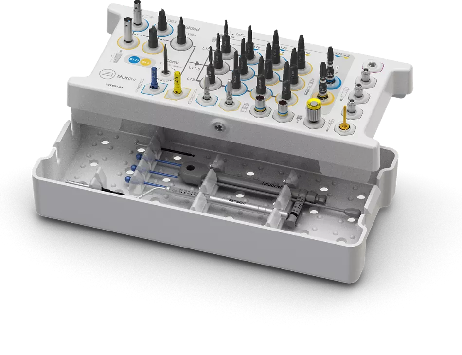 O novo Neodent® Zi MultiKit™ é um kit completo concebido para protocolos convencionais e guiados, permitindo um ambiente cirúrgico mais organizado, eficiente e adaptável.