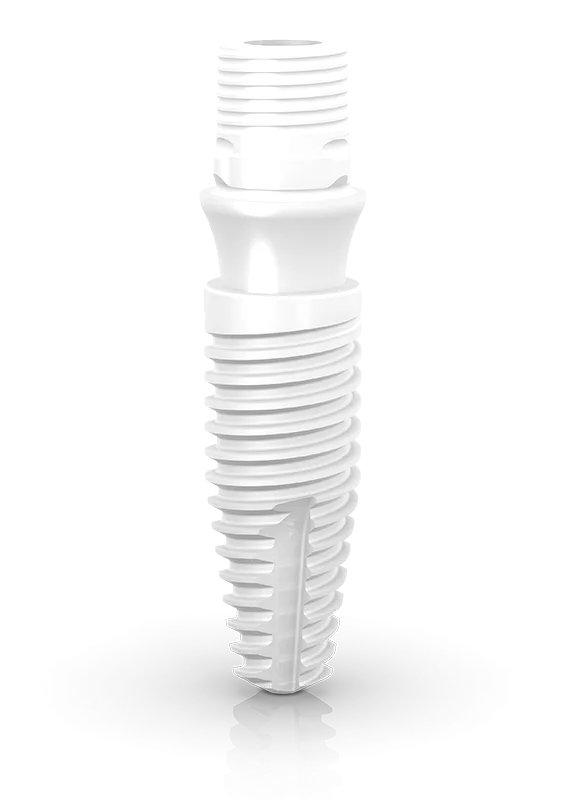 Implantes e componentes produzidos em cerâmica com parafuso interno longo para uma distribuição de força otimizada em toda a conexão interna.