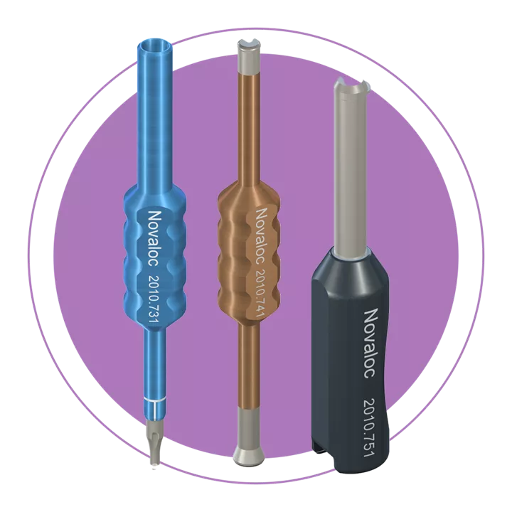 • Disponível alojamento de matriz em titânio ou PEEK de cor neutra.