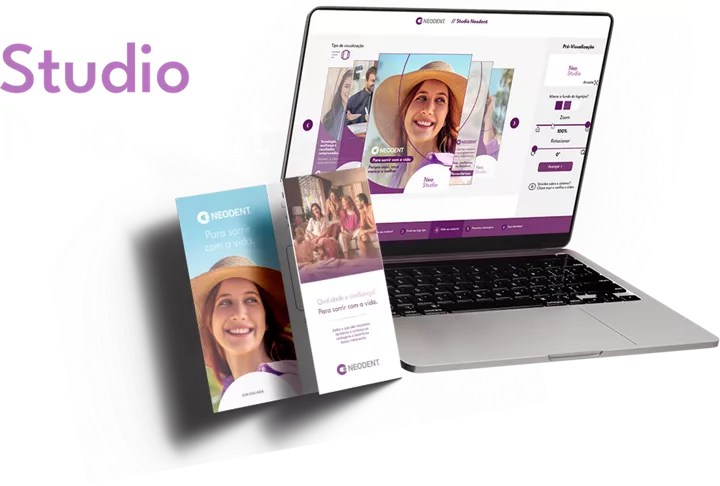Nossa plataforma exclusiva permite que você crie materiais personalizados com o logotipo da sua clínica, desde publicações para redes sociais até impressos para seus pacientes.