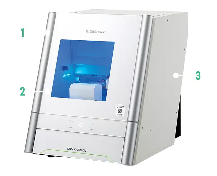 Confiável e precisa, incluindo controles com botão de toque e sistema de manuseio de discos, esta fresadora é ideal para dentistas que desejam realizar a produção internamente ou laboratórios que desejam capacidade de materiais de código aberto.