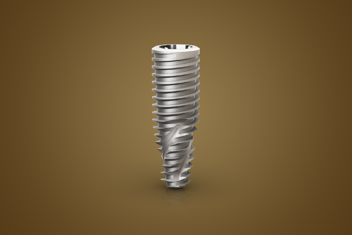 Caracterizado pelo desenho do corpo cônico duplo completo e um contorno híbrido, ou seja, roscas de compactação progressiva na área coronal e roscas cortantes na parte apical.