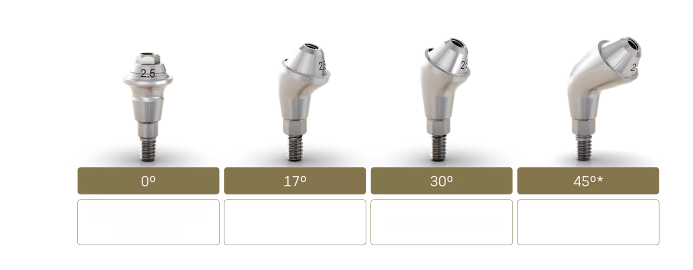 Plusieurs hauteurs gingivales et plusieurs angulations associées à une forme anatomique, cône court et forte angulation, avec pour résultat un profil d’émergence optimisé.