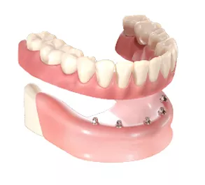 - La prothèse est amovible (dentier) et maintenue par les gencives.
