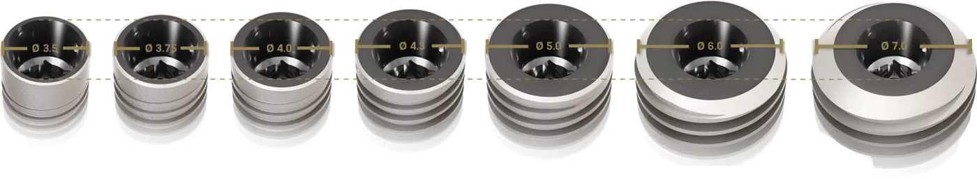 Tutti gli impianti Neodent® Grand Morse®, indipendentemente dal diametro dell'impianto, offrono la connessione unica nel suo genere Grand Morse®, progettata per consentire l'utilizzo di un portfolio protesico unico. Design del moncone Neodent® Grand Morse® con diametro più stretto rispetto all'area coronale dell'impianto, che consente il concetto di platform switching.