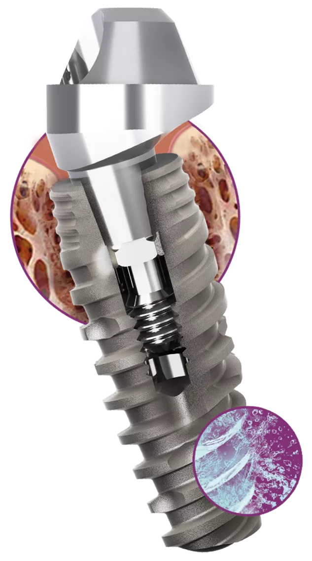 Sello cónico diseñado para evitar la migración de bacterias al implante.5
