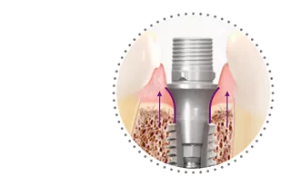Consistent soft tissue management profile and flexible gingiva height respecting the biological distances for achieving immediate function and esthectics.