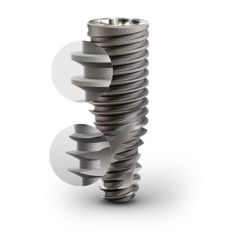 Titamax® Grand Morse™ es un implante cilíndrico indicado para huesos de tipo I y II que aporta flexibilidad en el posicionamiento vertical.