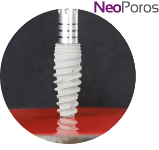 La superficie NeoPoros se desarrolló usando un proceso de chorro de arena y grabado con ácido.