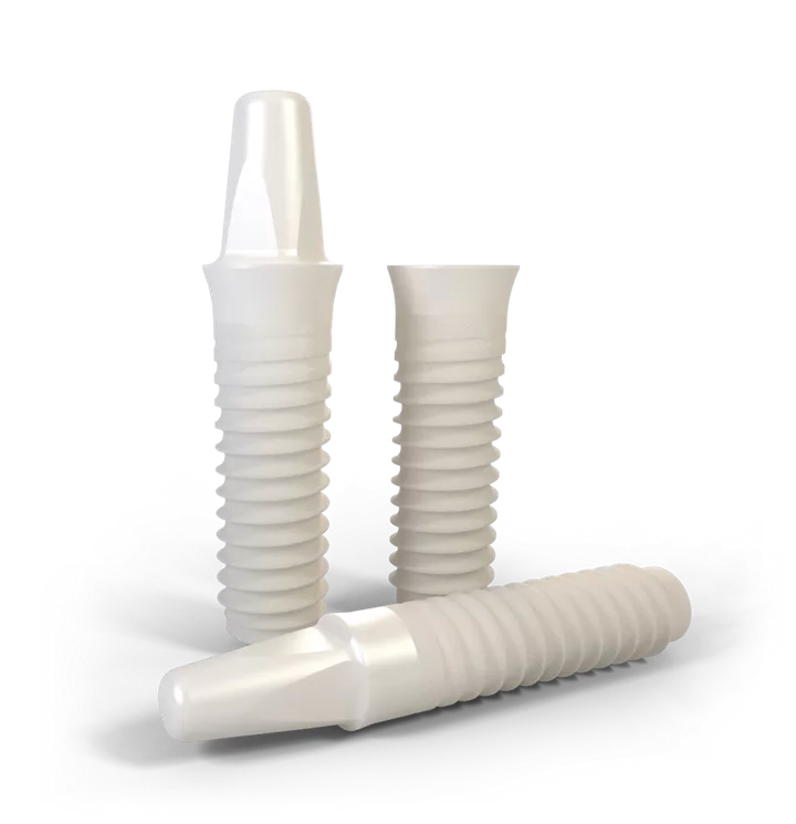 High-performance zirconia ceramic (Y-TZP) with higher fatigue strength than grade 4 titanium implants.1,2