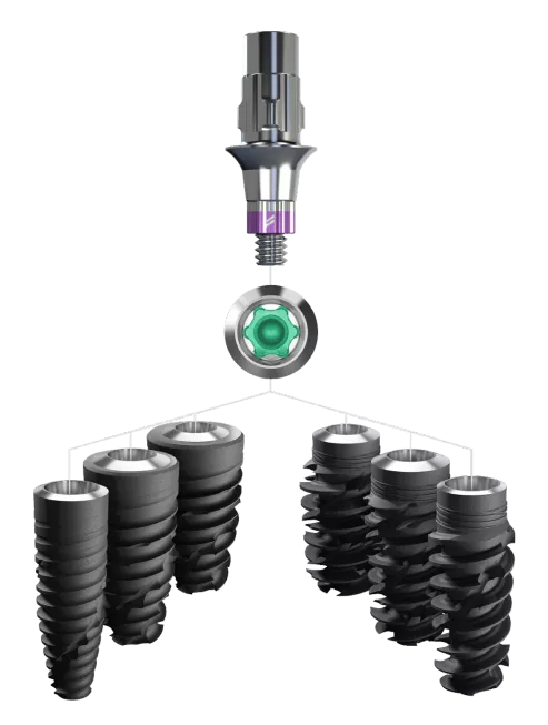 One TorcFit™ connection for all four implant designs sharing the same connection diameter for all prosthetics. Profit from restorative simplicity with a complete range of Straumann® original stock and customized prosthetics.